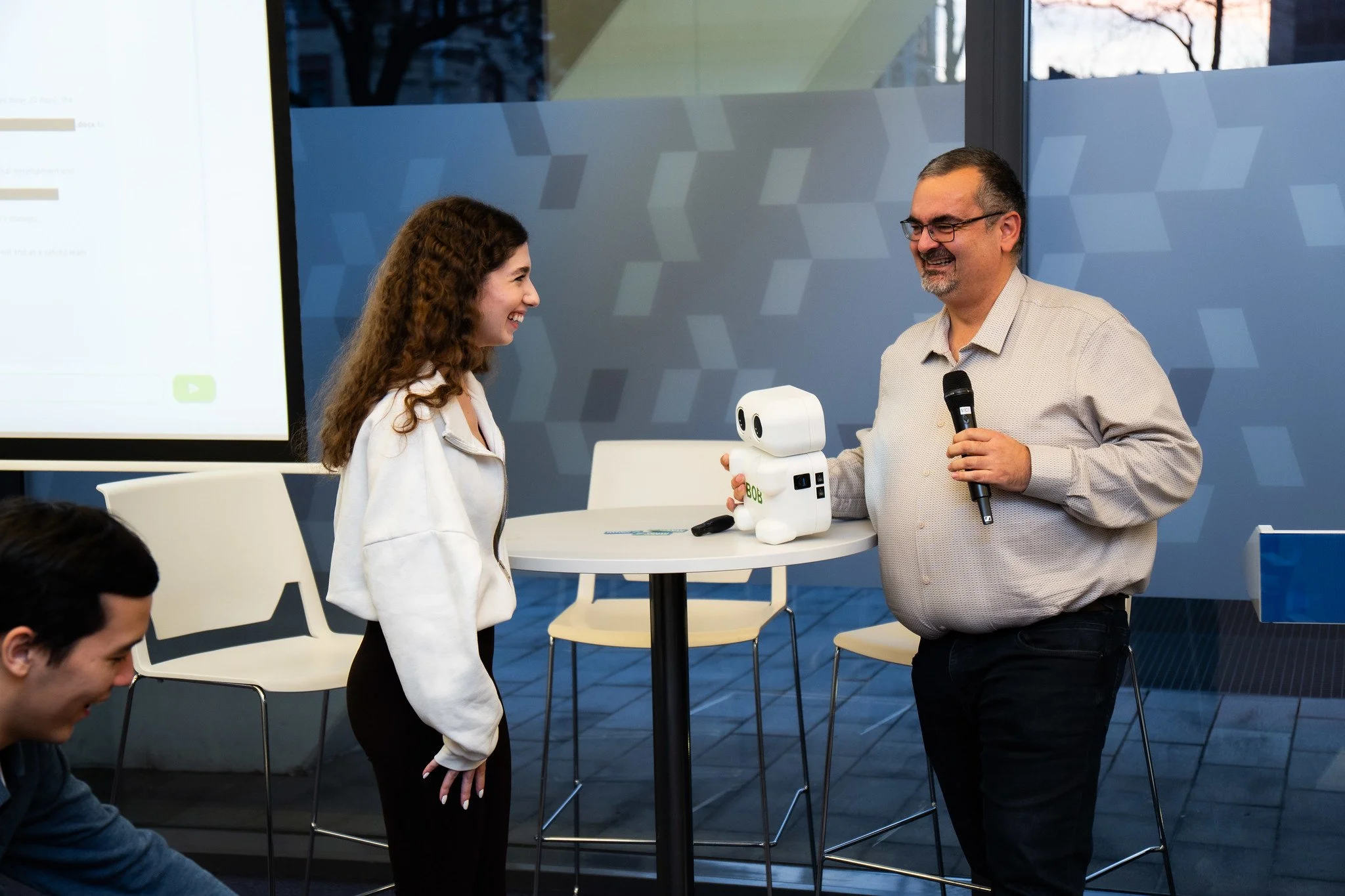 Our compliment‑giving robot, BOB, was once again one of the undeniable stars of our presence 🤖✨. Together with our colleague leading the interactive session, BOB helped create a fun and engaging atmosphere that encouraged students to interact, ask questions and jump into discussions. During our workshop, we shared simple, real examples about the challenges of developer work and how teams can stay motivated and effective. Students also asked direct questions about evosoft and career opportunities.